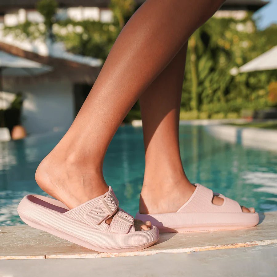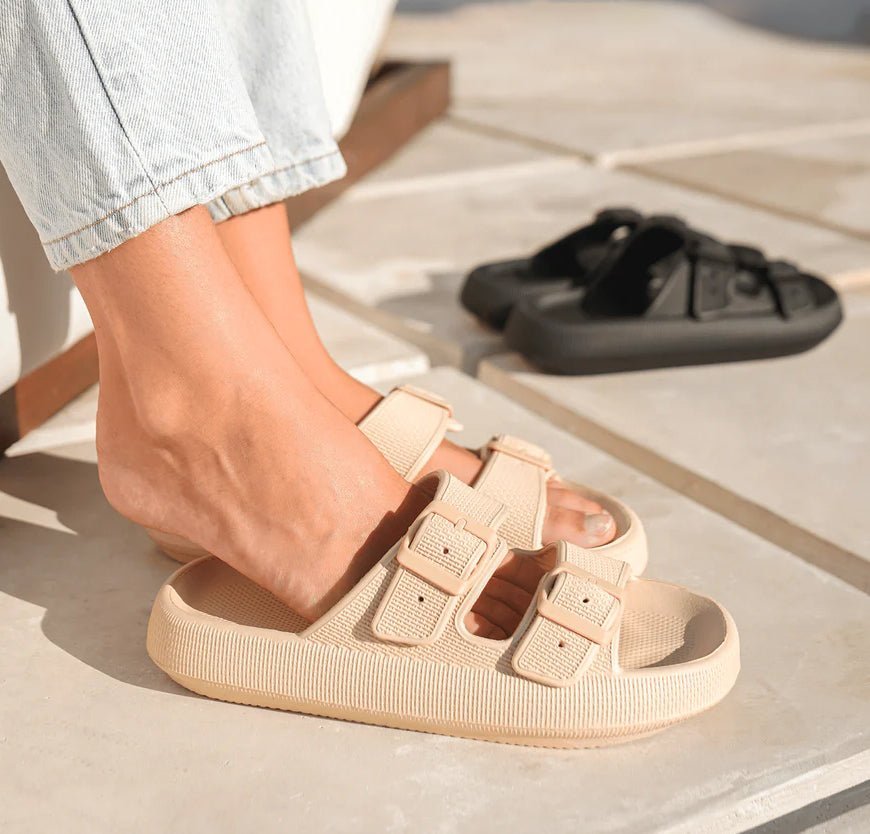 If you’ve been searching for comfortable slides with arch support UK that actually stay on your feet, you’ve found them. The Pimali Belt Slides combine our signature pillow-soft EVA sole with an adjustable back strap — giving you the cloud comfort of pillow slides with the secure fit of a sandal.