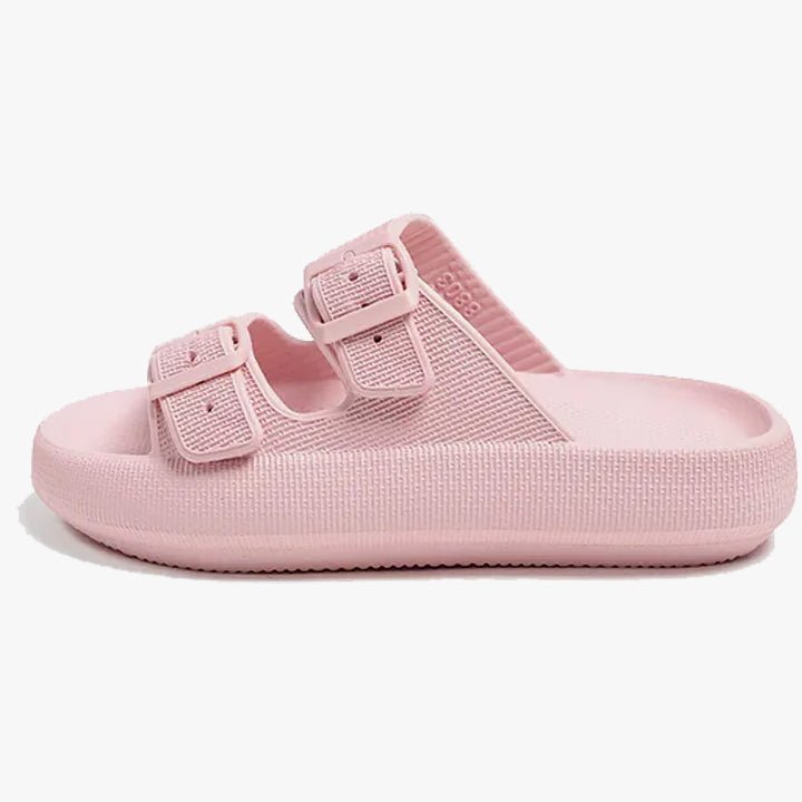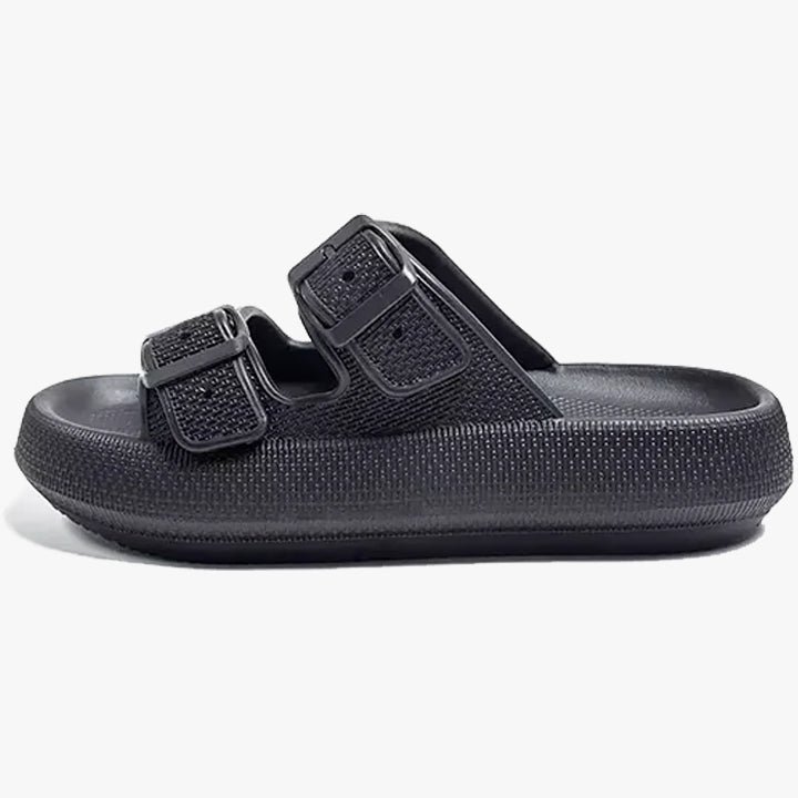 • Adjustable Belt Strap — Unlike standard pillow slides, the back strap locks your foot in place. Perfect for walking the dog, garden work, or quick errands without your slides flying off